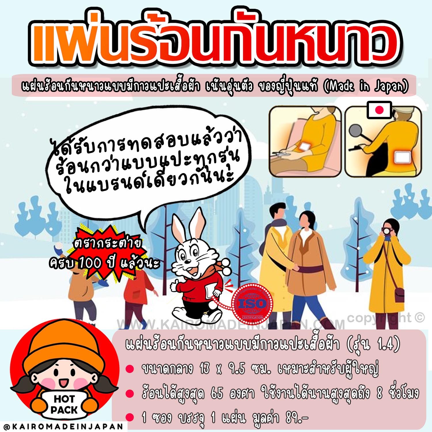 | หมวดหมู่ | 1. แผ่นร้อนกันหนาว แบบมีกาว สำหรับแปะกับเสื้อผ้า เน้นอุ่นตัว | |